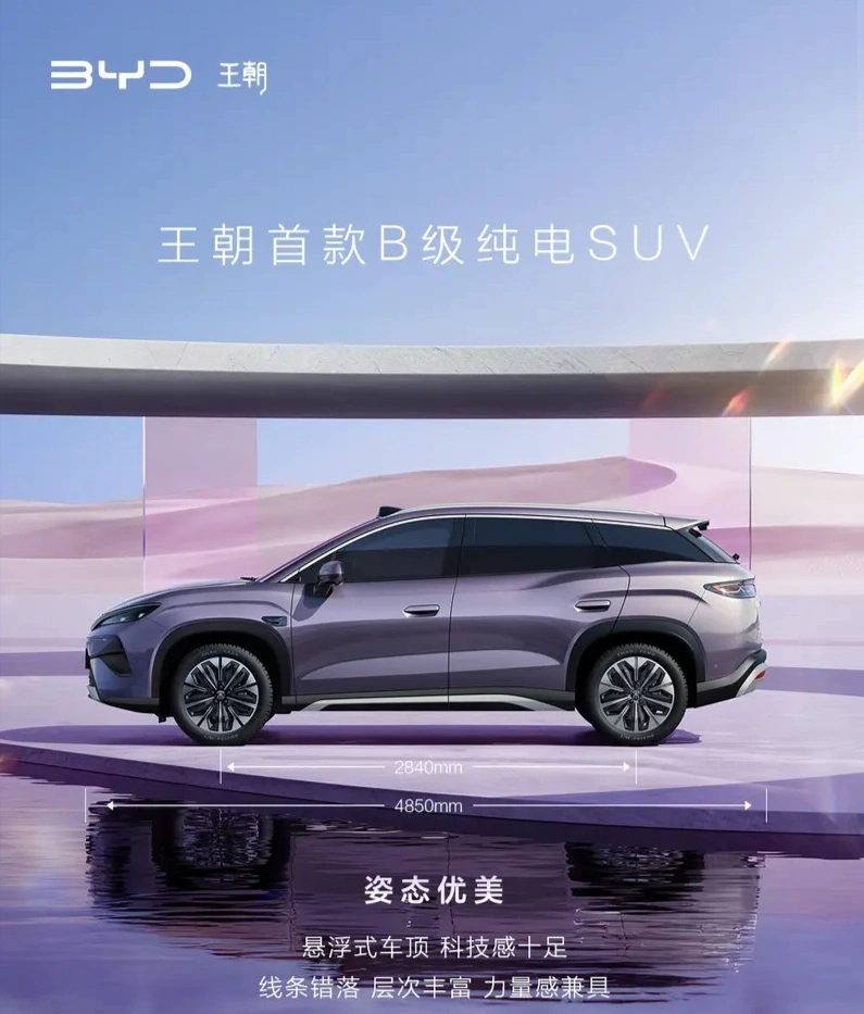 今天咱们聊聊这台刚亮相的王朝首款B级纯电SUV。宋Ultra EV这次是真把“大”字写在脸上了。4850毫米车长、2840毫米轴距,比宋L DM-i大一圈。