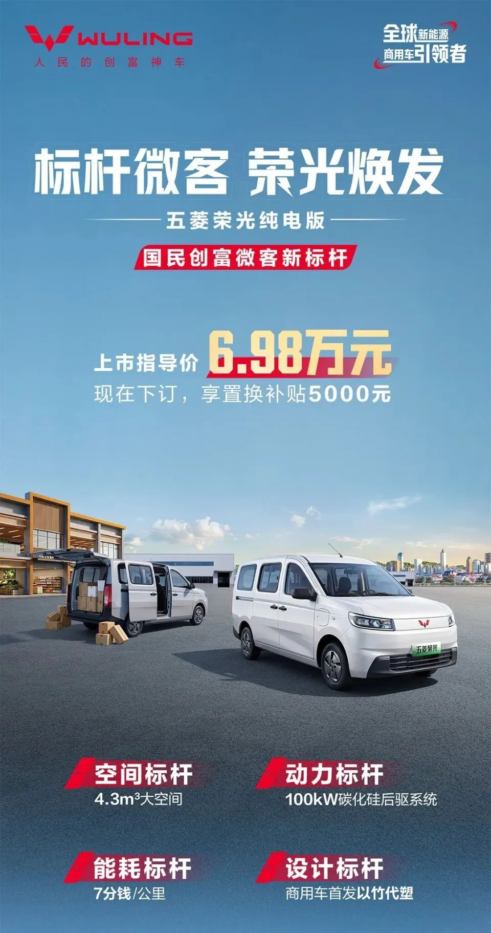 老铁们,咱老百姓搞运输、做小生意,就缺一台便宜、省心、还省钱的赚钱工具!3月9日,上汽通用五菱正式推出了荣光纯电版,全系就1款配置,售价6.98万,下订还能享5000元置换补贴,算下来入手价才6万出头,纯电续航310公里,妥妥的平民级赚钱神器。这台车不玩花里胡哨的设计,主打一个实用耐造,专门针对城乡物流、城市配送、小本生意用户打造,剑指长安之星9 EV、北汽EV5这些同级商用纯电微面,摆明了就是要靠亲民价格、扎实续航和高实用性,成为老百姓的“致富好帮手”。