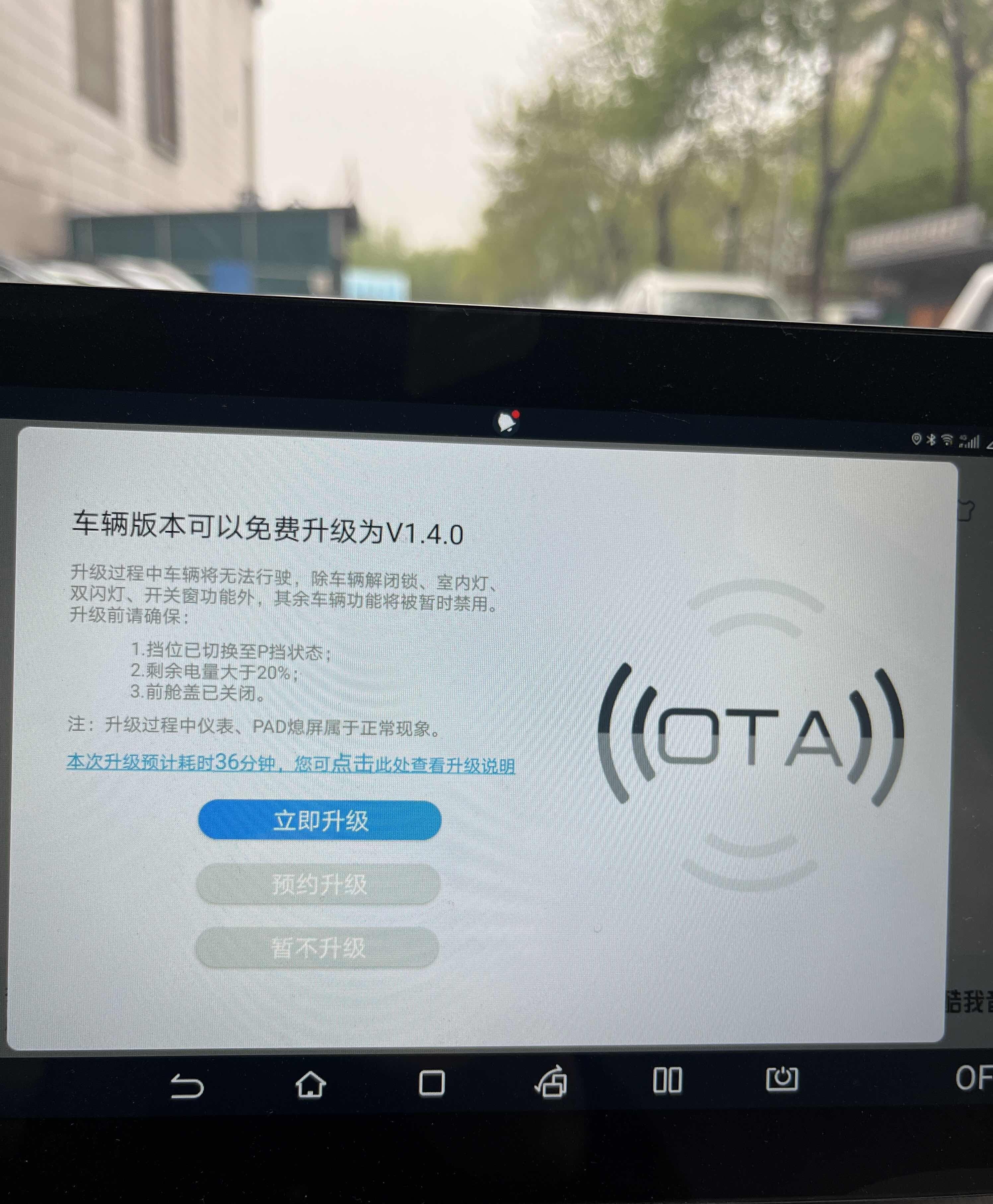 终于等到我的车能升级,可是升级的还是没有一点作用,从前年12月份买车,到现在都已经快一年半,第一次通知有更新。给我激动坏了,还以为要更新千里眼,结果更新个这?害我白激动了半天,看来我们真的是让放弃了。OTA升级也是只升级的边角料,半天一个主要功能都没有。