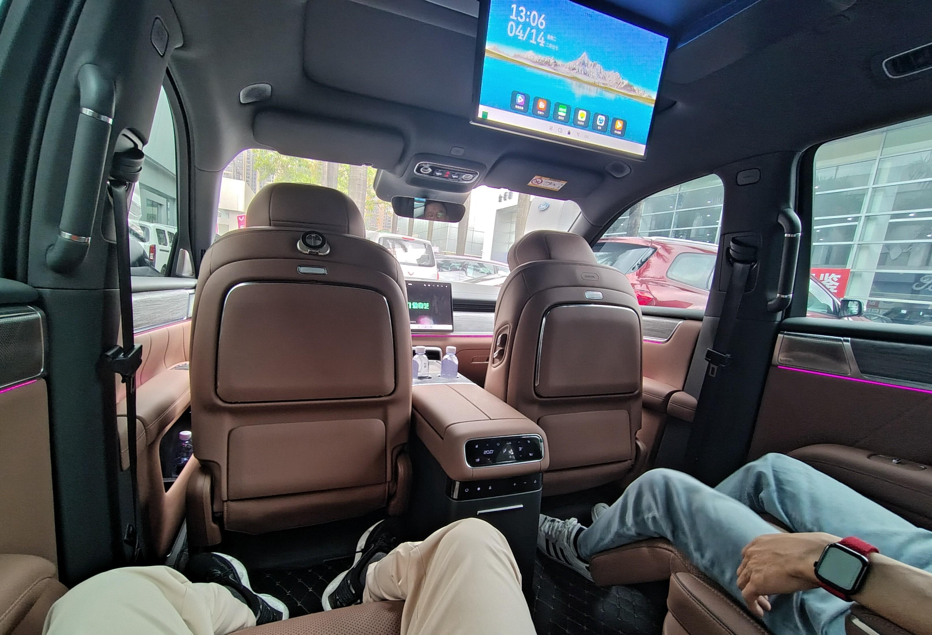 差在配置的取舍上。华境S把钱砸在了智驾和空间利用率上。它的第三排不是“应急小板凳”,1120mm超宽坐垫加125°电动躺倒,1.8米成年人坐进去腿部头部空间都充裕。六座满员时后备箱还有423L容积,能放下7个20寸登机箱。