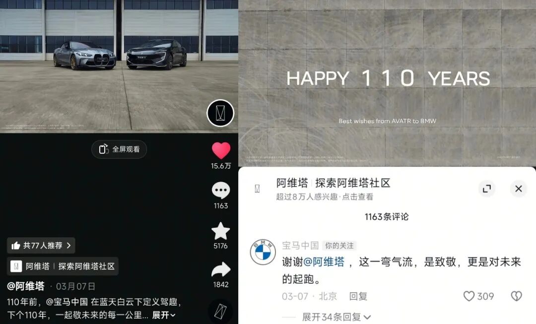 阿维塔为宝马庆生,深情互动赢得大量点赞