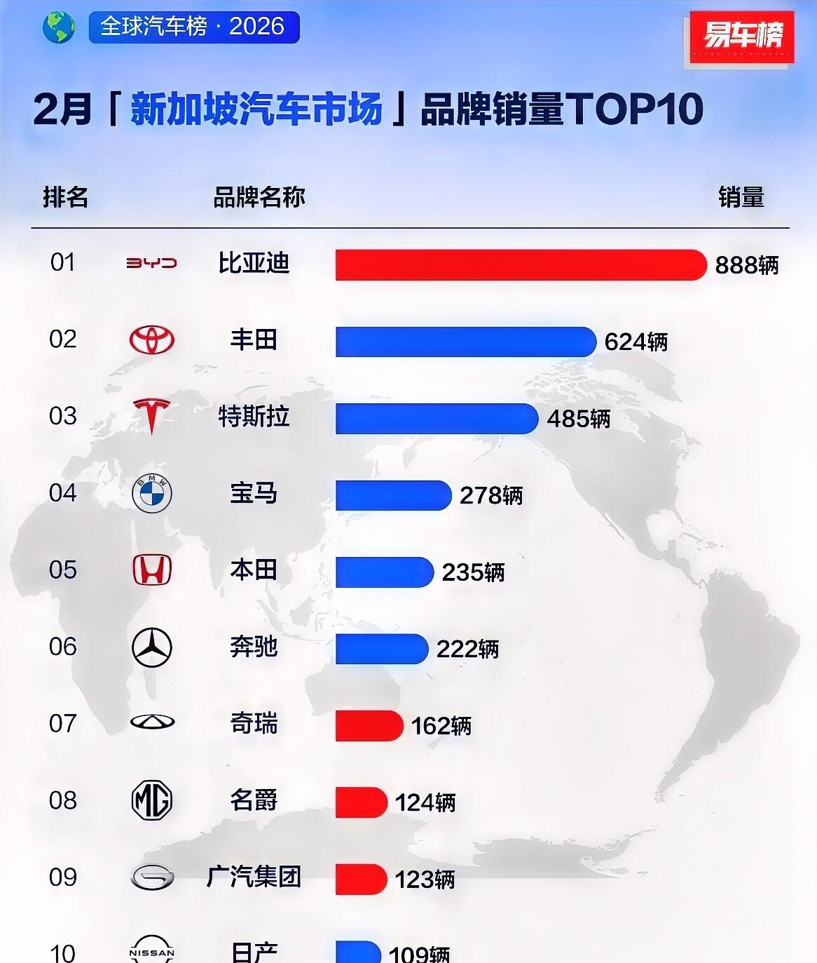 彻底干翻日系!新加坡车市变天了:比亚迪一个月卖888辆稳坐第一,奇瑞狂涨4倍多,买燃油豪车的人越来越少了。