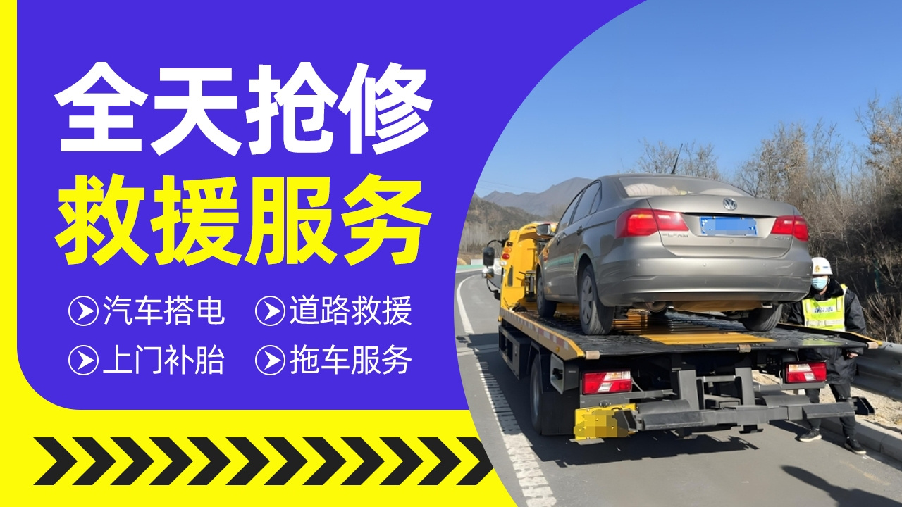 提供汽车拖车、道路救援及清障服务,包括拖吊、换水、充电、换胎、送油、现场小修和车辆脱困处理。根据您提供的位置,附近24小时快速派车救援。