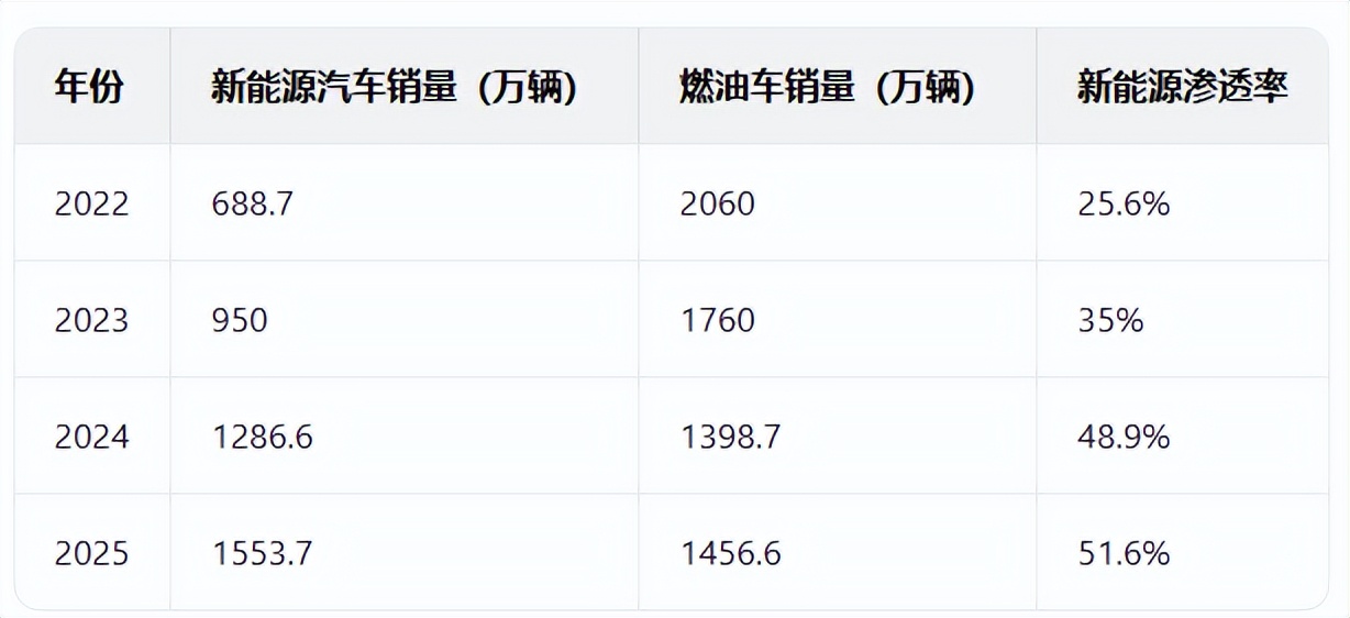 公开数据显示,近四年中国新能源汽车与燃油车销量,也形成鲜明的对比。