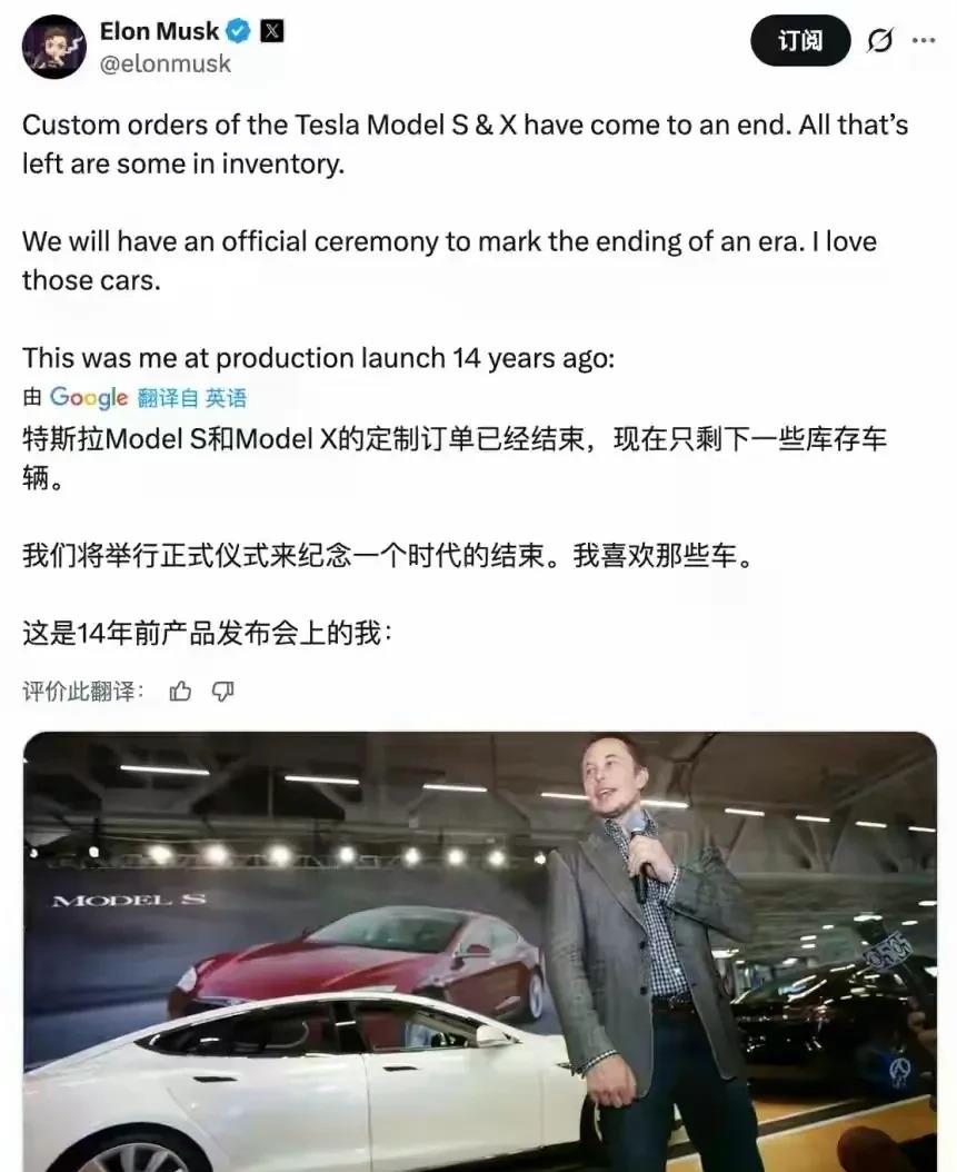 2026年4月1日,马斯克在X平台亲口证实,特斯拉Model S和Model X正式停产,全球停止接单,只卖库存。这不是愚人节玩笑。两款曾撑起特斯拉门面的百万级电动豪车,就这样悄然退场。当所有人以为空出来的产线要留给万众期待的新车时,马斯克却给出了一个令人意外的答案——产能给了机器人,不是车。