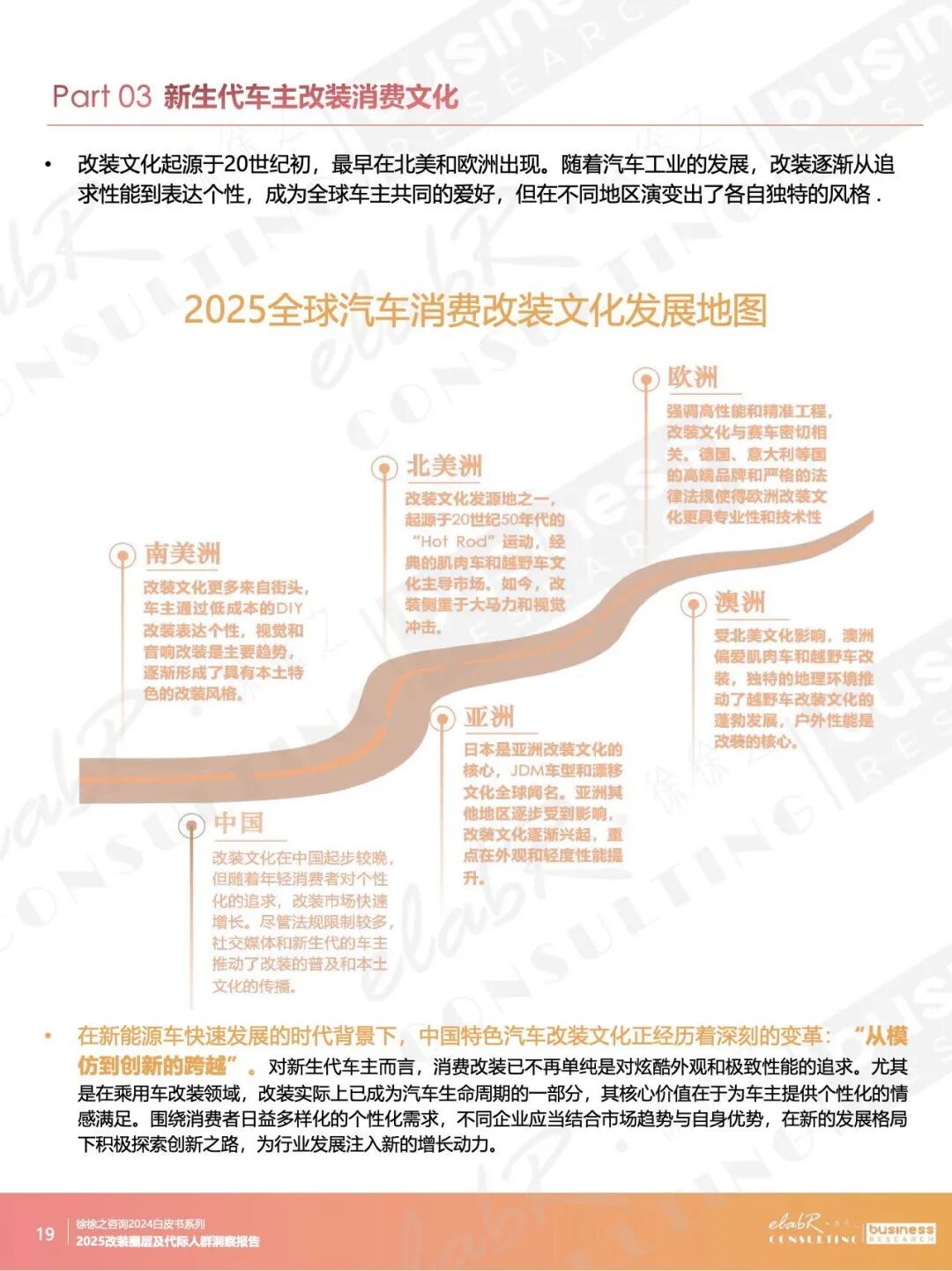 随着代际消费差异与技术迭代的持续作用,中国汽车改装文化将完成从"地下文化"到"主流消费"的质变,形成兼具国际视野与本土特色的产业生态。