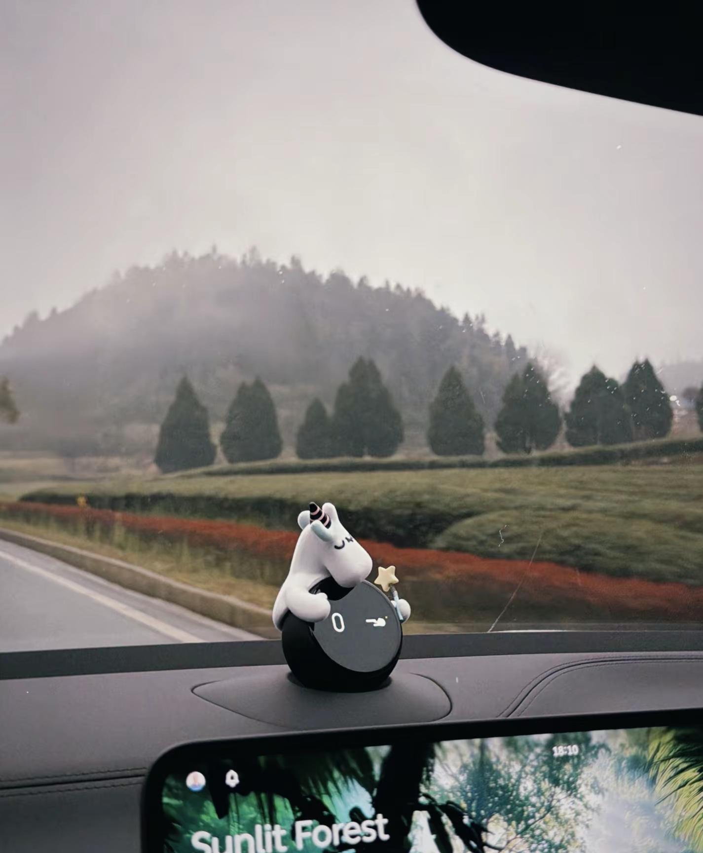 而且"自然奇境"这个主题玩得很高级。它不是在车上贴几个动物贴纸就完事,而是把"雪豹"这个意象转化成了一种可感知的设计语言,藏在你看得见但不会第一时间注意的地方。等你某天无意间发现遮阳板上那个爪印的时候,那种惊喜感,就跟翻到旧书里夹着的一张明信片一样。