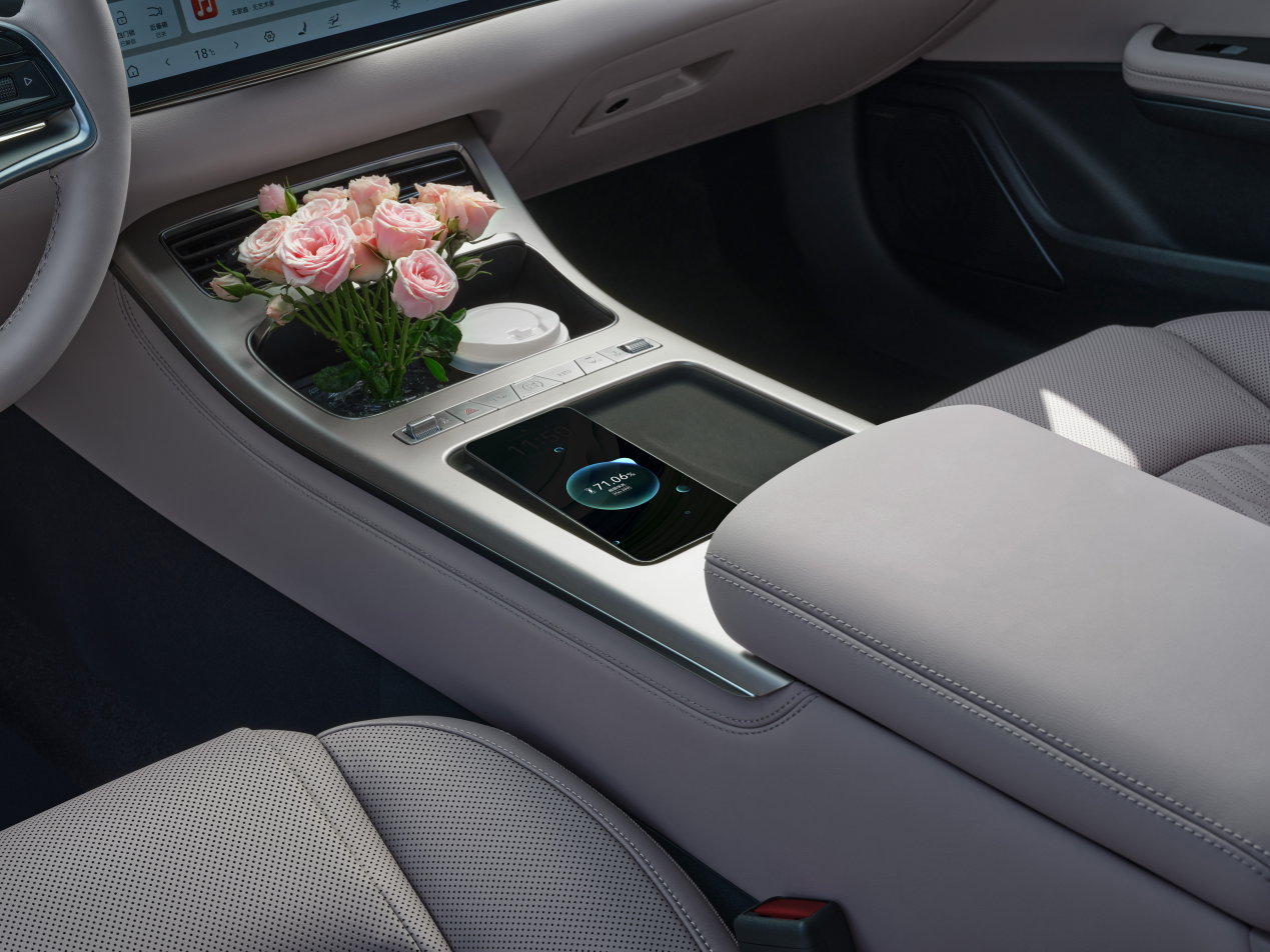 内饰方面,汉长续航版也进行了全面升级。副仪表台采用激光拉丝面板,提升了科技感和视觉效果;副驾驶台使用婴儿肌触感皮质材料,不仅柔软舒适,还方便清洁。为了给用户提供更加简约和高档的座舱体验,新车全系标配电子怀挡,使整个中控区域更加简洁,提升了智能科技感。此外,车内还配备了4.5L智能冷暖冰箱,温控范围为-6℃至50℃,支持按键和语音控制,带来更多舒适便捷的体验。