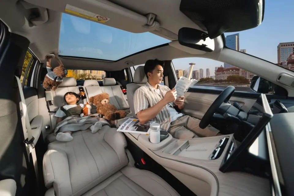 坐进车里,能发现埃安i60在“讨好用户”上花了些巧思。最绝的不是那块悬浮大屏,而是方向盘左侧那个隐藏式手机支架底座,以及全车多达7处的磁吸扩展接口。这思路太“互联网”了——车机再智能,很多时候也比不上手机导航顺手;车内储物,不如给你留好接口自己DIY。这种“用户共创”式的小心思,对比宋Pro DM-i那种提供完善但固定解决方案的传统思路,显得更灵活、更接地气。当然,座椅通风加热按摩、后排小桌板这些舒适配置也没落下,诚意是足的。