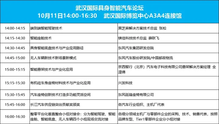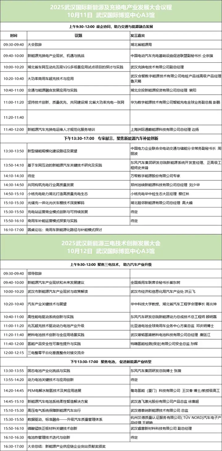 展会同期举办2025世界级汽车产业集群创新发展大会、武汉国际具身智能汽车论坛、武汉国际汽车车身系统与轻量化论坛、武汉国际汽车投融资与AI数智化论坛、2025武汉国际新能源及充换电产业发展大会、2025武汉新能源三电技术创新发展大会。会议相关议程公布如下,欢迎广大行业发展人士能在此刻齐聚一堂,共同探讨和分享技术经验与新成果!
