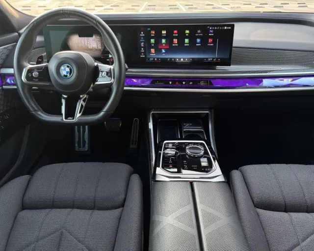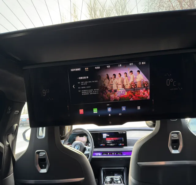 进入车内,豪华感扑面而来。Merino真皮与羊绒组合的内饰材质,触感细腻如丝绒,无论是方向盘、座椅还是门板,每一处可触及的地方都尽显考究。M专属运动方向盘握感扎实,集成的多功能按键操作便捷,搭配水晶质感的内饰组件,将运动氛围与奢华质感完美融合。一体式悬浮曲面屏集成了12.3英寸数字仪表盘与14.9英寸触控屏,配合环抱式交互光带,科技感十足。后排的31英寸8K悬浮巨幕更是点睛之笔,搭配宝华韦健钻石环绕音响,打造出移动影院般的享受,不过前排仅保留一个杯架的设计,确实略显不便。