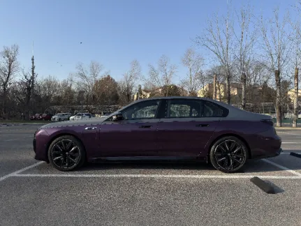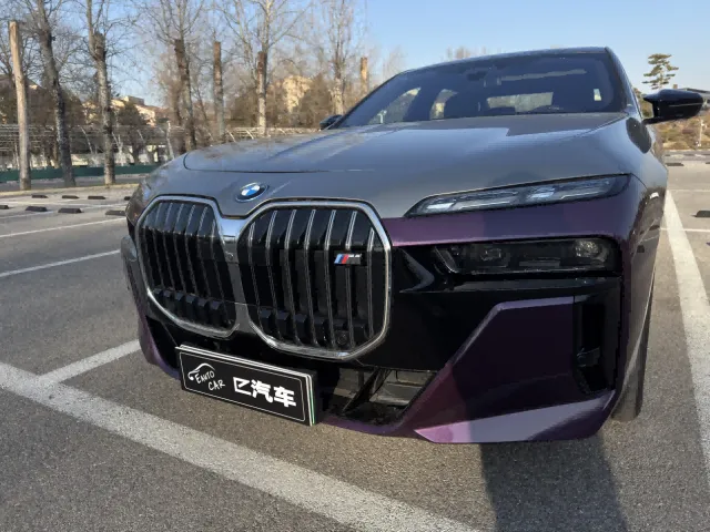 双拼色车身无疑是这款车的“吸睛利器”。此次试驾车型采用岩石灰与丝绸紫的双色搭配,专属定制的车漆在阳光下呈现出细腻的金属光泽,车身腰线从前翼子板流畅延伸至车尾,勾勒出沉稳又不失灵动的轮廓。标志性的M标志双肾格栅搭配环形光耀灯带,夜晚点亮时辨识度拉满,而施华洛世奇水晶日间行车灯则为这份霸气增添了几分精致,每次解锁时的流光动画,都让仪式感瞬间拉满。车尾的四出排气与M760Le专属标识,低调宣示着其性能身份,搭配21英寸M运动轮毂,行驶在北京城市的车流中,回头率丝毫不逊色于超跑。