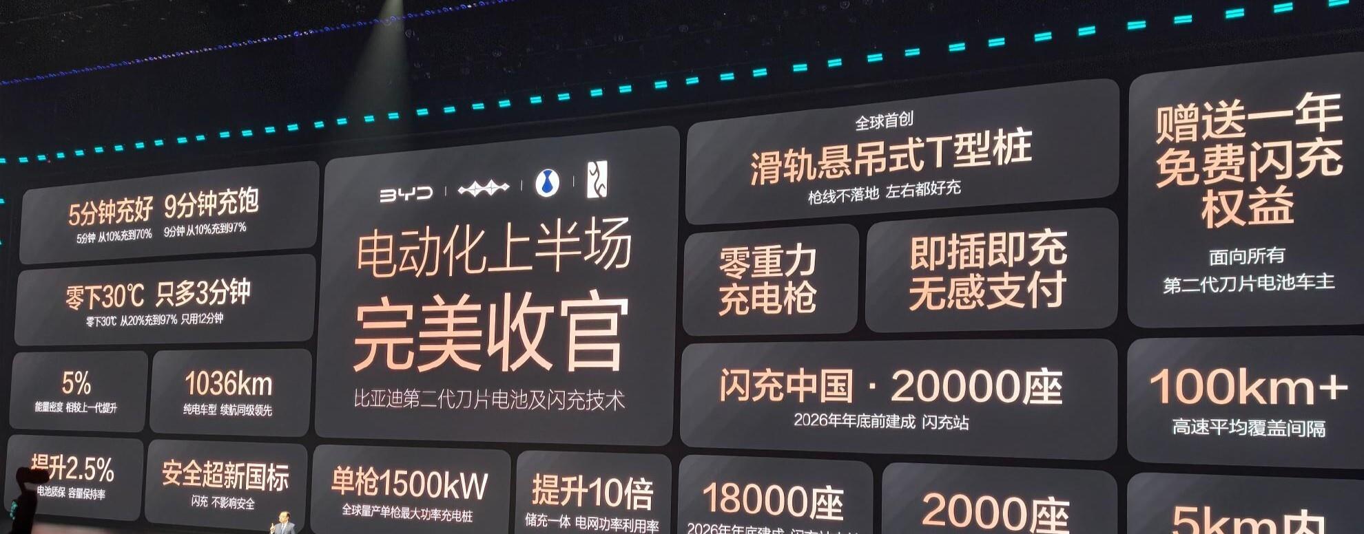 那问题来了,既然销量稳住了,为啥还要大降价?我仔细看了下这次降价的名单,发现一个很有意思的规律:降的全是老款。秦PLUS DM-i就不用说了,上市好几年了。秦L虽然今年1月才上市,但本质上还是第一代刀片电池的架构。而就在3月5日,比亚迪刚开了个重磅发布会,王传福亲自站台,发布了第二代刀片电池和闪充技术。这玩意儿有多猛?官方数据是:从10%充到70%,只需要5分钟;从10%充到97%,只需要9分钟。你没听错,不是半小时,不是一刻钟,是5分钟。这基本上就跟加油一个速度了。更夸张的是,零下30度的低温环境,从20%充到97%,只比常温多花3分钟。那些北方冬天充电慢、续航焦虑的老大难问题,直接被干掉了。
