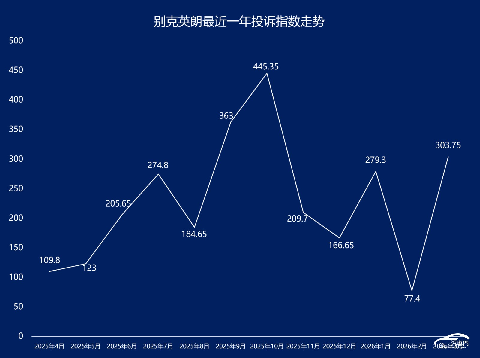 第一名:英朗 投诉指数 303.75