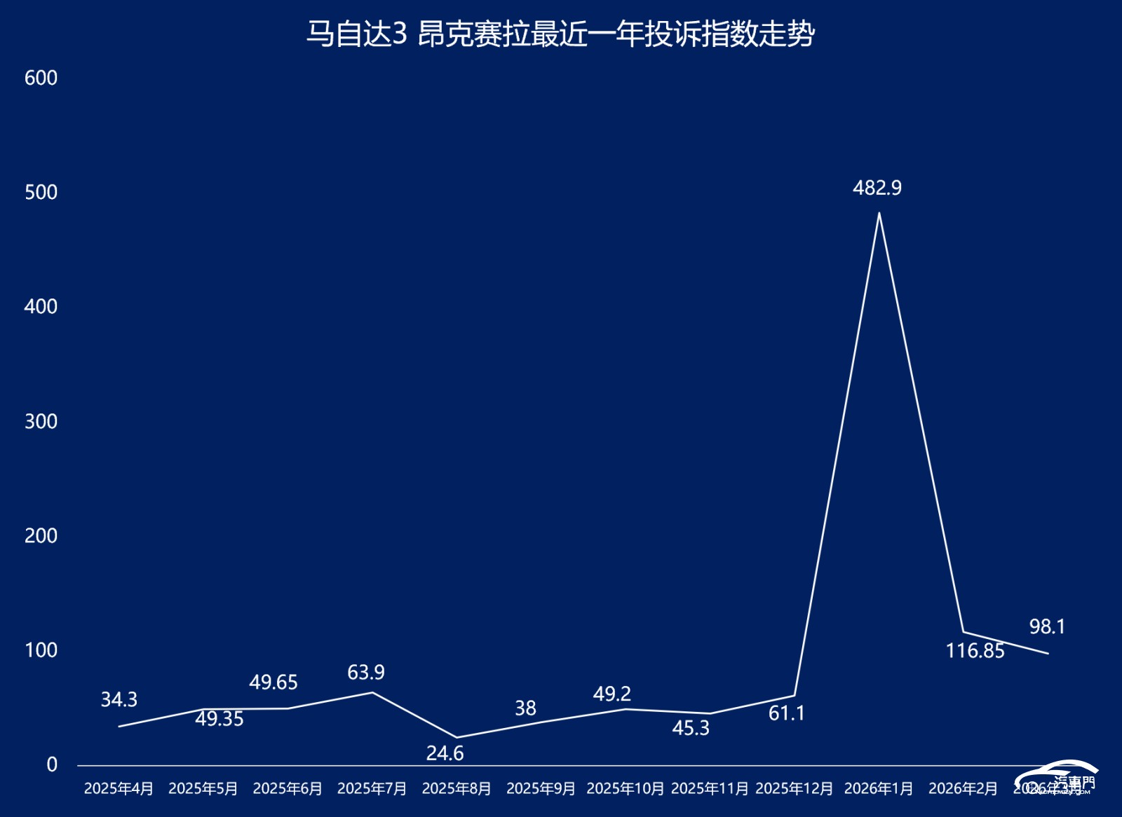 第二名:马自达3 昂克赛拉 投诉指数 98.1