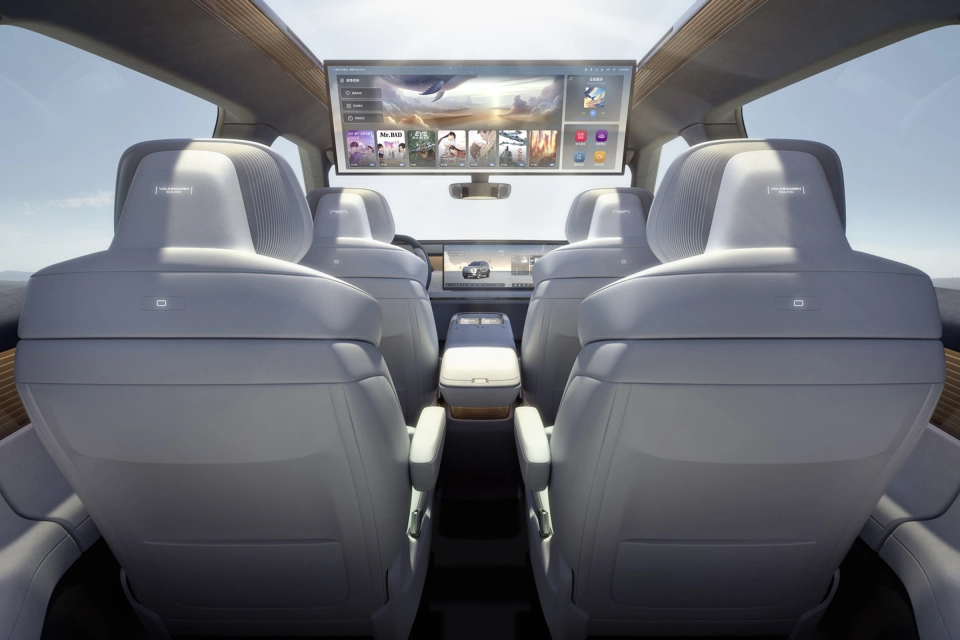 内饰配备中控+副驾双联屏、AI大模型语音助手,第二排“行政座椅”搭配吸顶屏,副驾驶设“女王座椅”,还拥有智能光语系统与多模态交互功能。