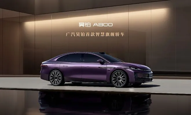 广汽昊铂A800新车采用溜背设计与贯穿式前后灯带,配备华为乾崑智驾HUAWEI ADS 4与鸿蒙座舱HarmonySpace 5,搭载EASi电磁主动悬架与“虎式调头”功能,支持快充30分钟补能30%-80%,内饰提供Nappa真皮座椅、14扬声器燕飞利仕音响及主动降噪技术。