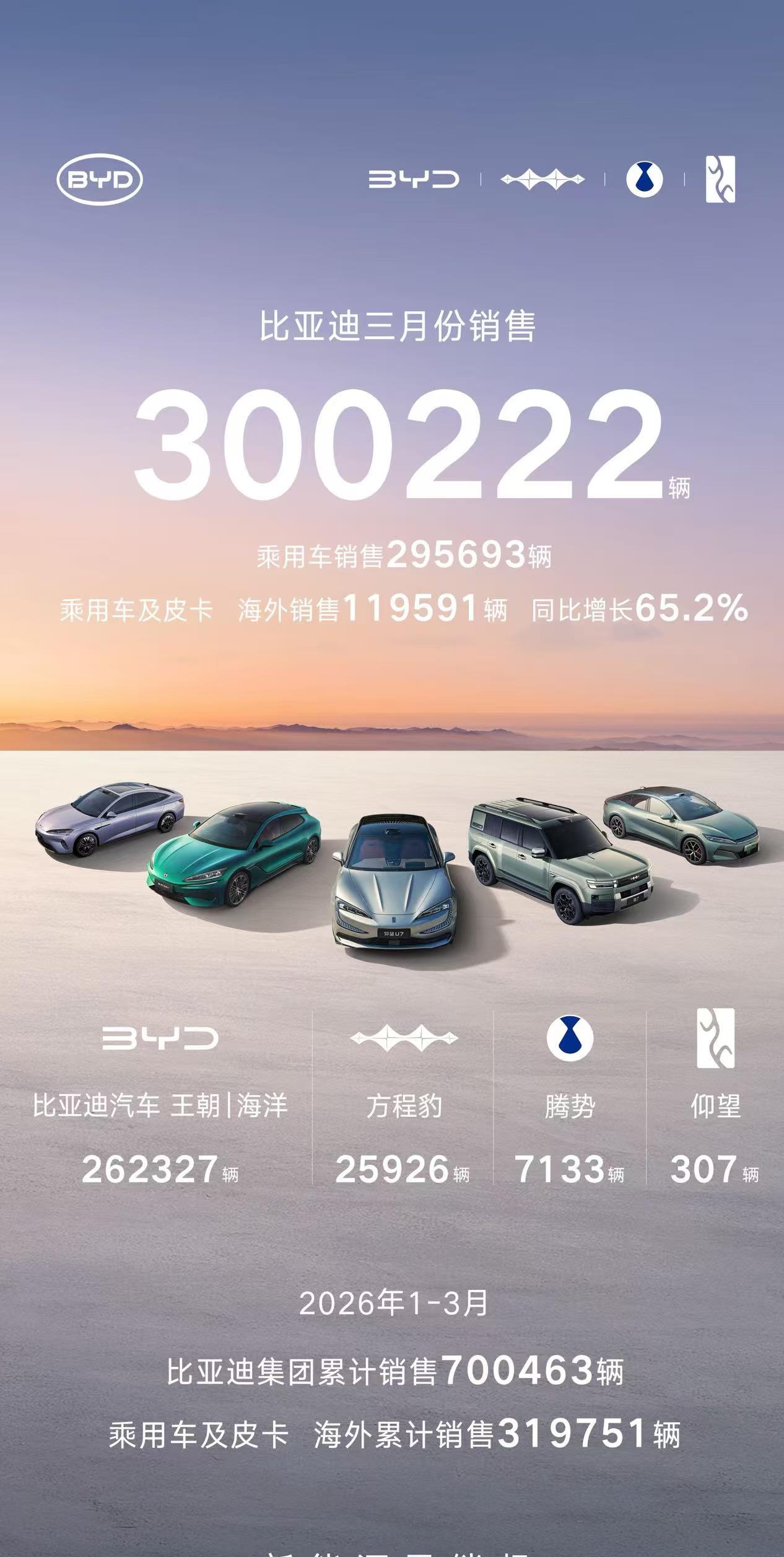 先说说这个海外数据,真不是一般的猛。3月份比亚迪出海卖了将近12万辆,同比暴涨65.2%。什么概念?一季度算下来,海外累计销量已经占到总销量的46%。46%啊朋友们,快对半开了。这意味着比亚迪已经不是那个只在国内市场跟人死磕价格战的玩家了,人家把一半的兵力都撒到了全球战场上。