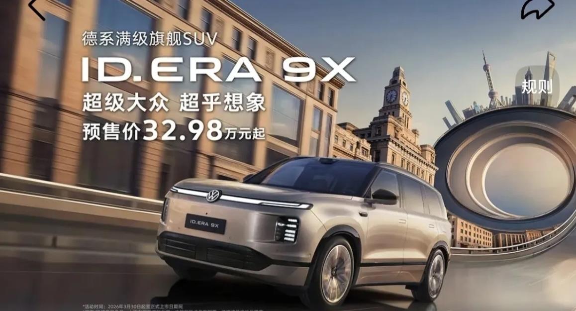 这就是为啥3月30日上汽大众ID.ERA 9X的预售消息一出来,那么多人盯着看。32.98万到37.98万的价格区间,直接杀进理想L8、问界M7的地盘。但大众这次是真带了家伙来的。