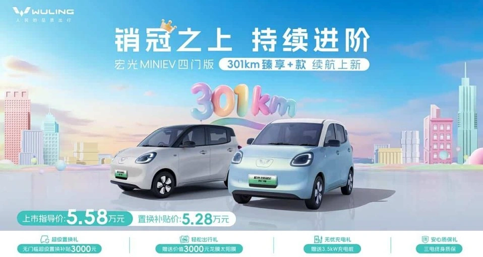 五菱宏光MINI EV四门版这波上新可太懂老百姓心思了,5.58万的指导价,置换后才5.28万,还送3000元龙膜、充电桩和安装服务,再加上三电终身质保,直接把微型电动车市场的性价比卷到新高度。作为累计销量破180万的“国民神车”升级版,这台车带着四门设计、301km续航和实用配置,正面硬刚比亚迪海鸥、长安Lumin和奇瑞QQ冰淇淋这些热门竞品,咱就像隔壁老王唠嗑似的,掰开揉碎了比比,看看它到底值不值得买,未来市场能不能继续火。
