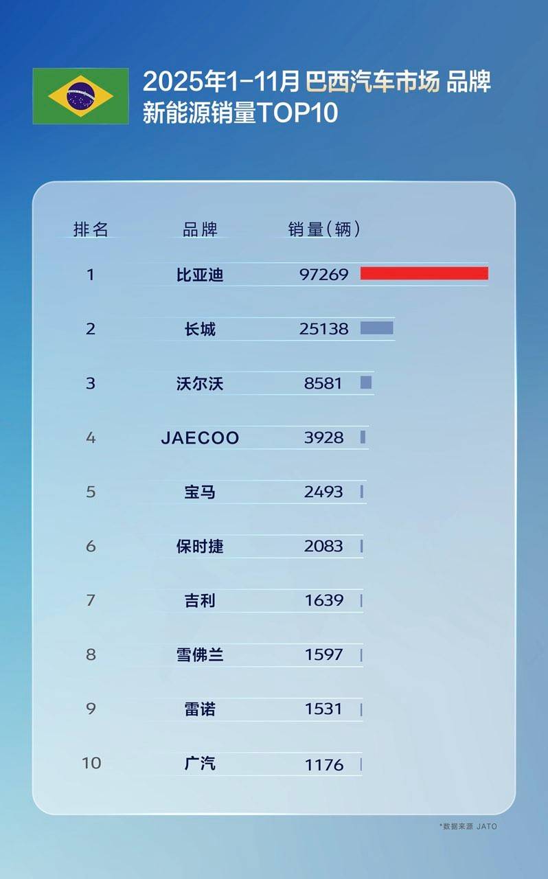 1-11月,比亚迪在 巴西、土耳其、西班牙、意大利 等国家的新能源汽车销量榜单上稳居首位,还在 新加坡、中国香港 等市场拿下全品牌第一!不仅在海外开疆拓土,连国人也纷纷为它打call~