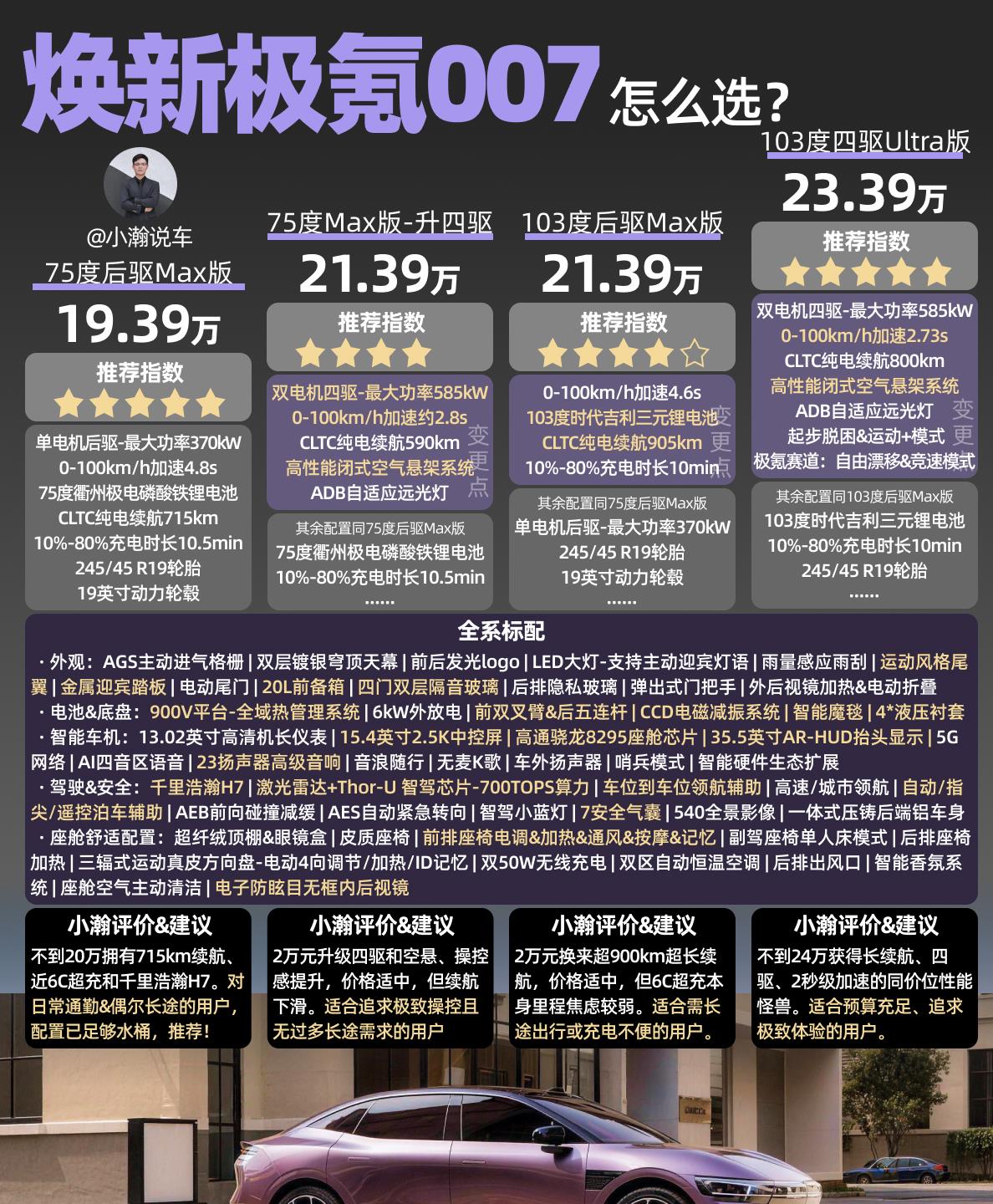 不过从这次焕新007的定价和配置来看,极氪似乎学乖了。没有玩那种“先高价卖一波,半年后降价增配”的老套路,而是直接一步到位:入门即高配,限时价直接杀到19.39万。这让新车主感到诚意满满,也让潜在买家不用再担心“今天买明天降”的风险。