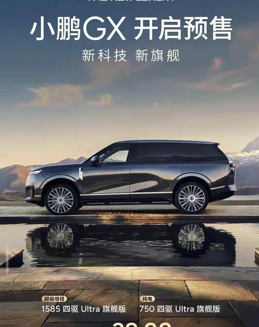 身后是一台全尺寸旗舰SUV,名字叫小鹏GX。预售价39.98万元,纯电和增程同价。