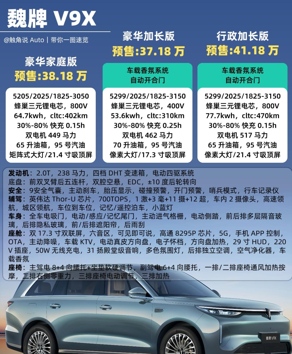 魏建军赌上姓氏的魏牌V9X开启预售,37.18万起配后轮转向和800V,这配置这价格能硬刚理想问界吗?