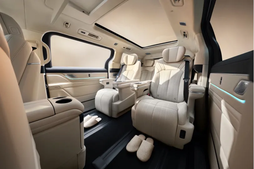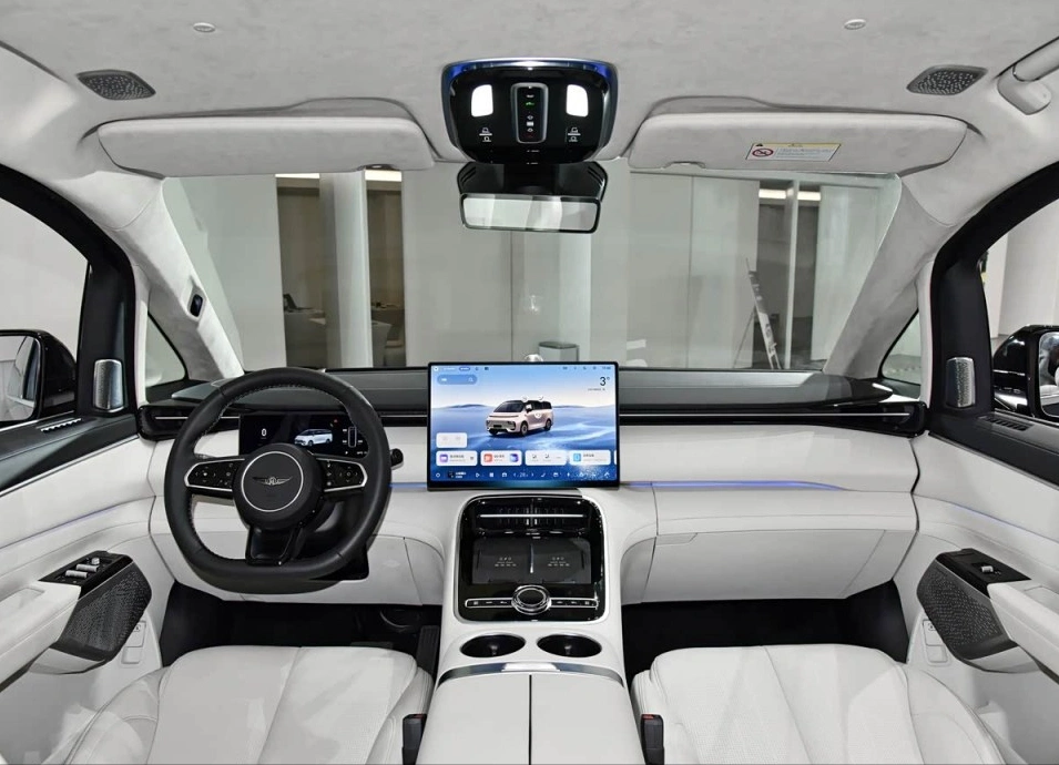 坐进车内,V900的思路是“智能赋能豪华”。15.4英寸中控大屏内置Flyme Auto 2智能座舱系统,流畅度和生态体验是它的强项。二排的吸顶娱乐屏、扶手控制屏、云感SPA座椅(带按摩通风加热)以及27扬声器音响系统,构建了一个顶级的乘坐娱乐生态。但真正让它与传统“保姆车”拉开代差的,是车顶那颗激光雷达所代表的“千里浩瀚辅助驾驶H5方案”。这套与行业顶尖技术同源的高阶智驾系统,意味着V900的目标不仅是让乘客坐得舒服,还要让司机(或车主自己)开得轻松,甚至在高速和城市快速路上实现接近自动驾驶的体验。这在MPV领域,是一个降维打击式的优势。