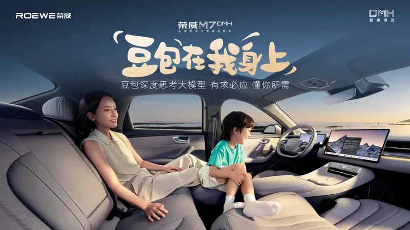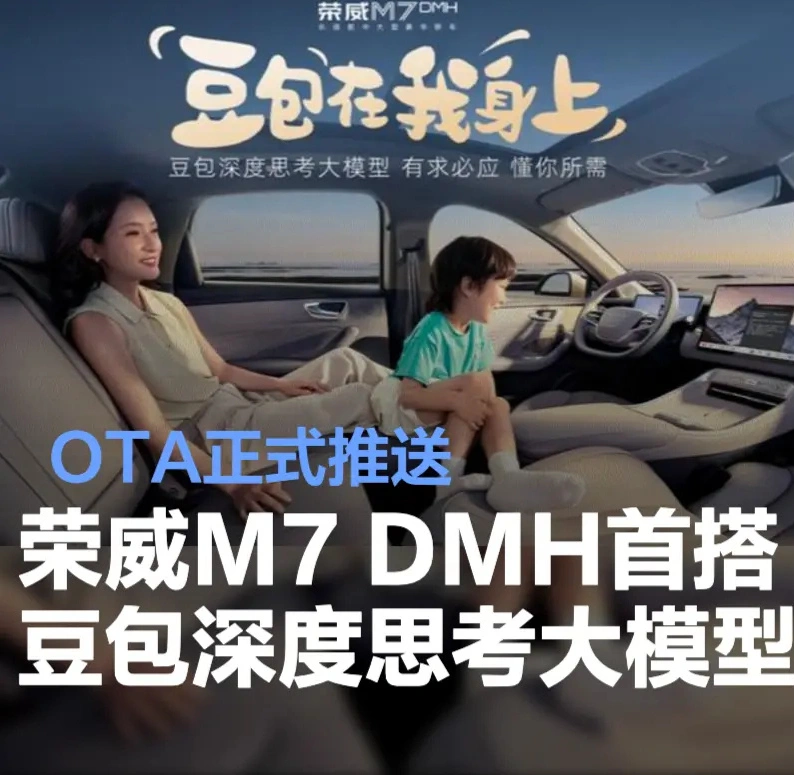 荣威M7 DMH全系标配15.6英寸2.5K中控屏、10.25英寸液晶仪表与高通8155芯片,通过OTA推送豆包深度思考大模型,支持模糊语义理解与复杂车控,同时配备快慢充接口、L2级驾驶辅助、360°全景影像+透明底盘等配置。