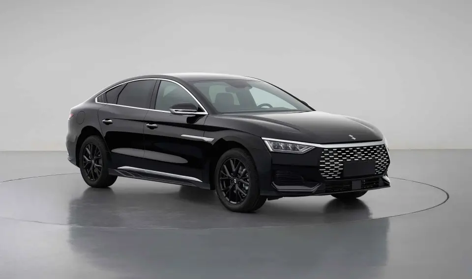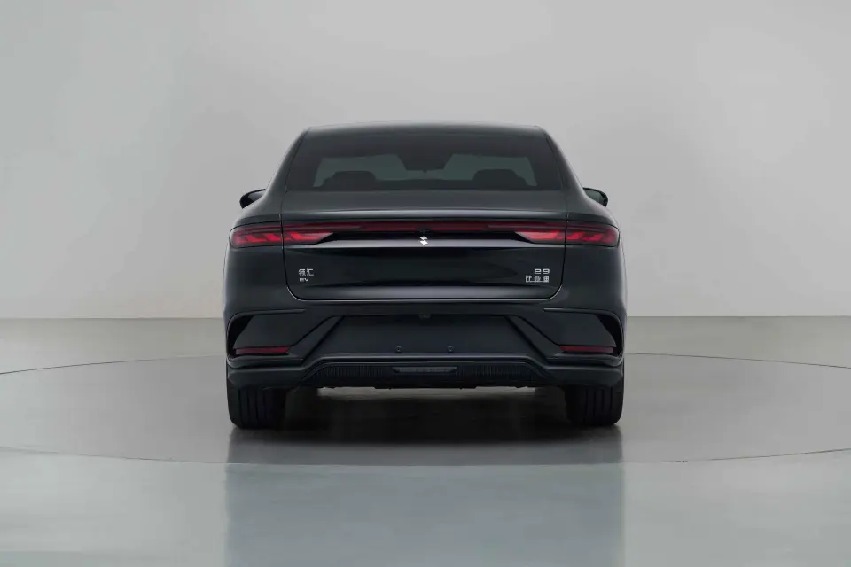 先说外观。第一眼看过去,这不就是比亚迪汉吗?4995毫米车长、2920毫米轴距,确实沿用了老款汉DM的设计语言,大嘴格栅配点阵镀铬,商务范儿挺足。不同的是,前舱盖和车尾换上了全新的领汇LOGO,轮辋做了黑化处理,门把手还是传统的机械式。整体感觉就是“汉换了个标”,但仔细看细节,确实更偏营运车辆的务实风格。