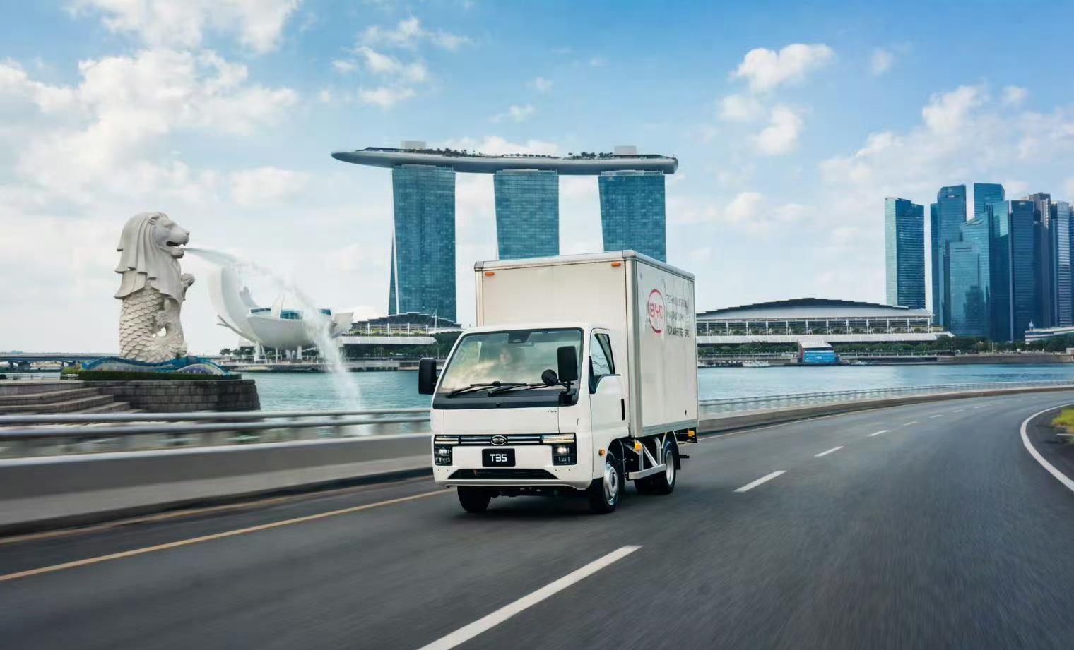 再看卡车。比亚迪是2020年进的新加坡电动卡车市场,当时是头一家,卖的是环卫车T9。从2021年到2025年这五年,比亚迪纯电卡车在新加坡累计注册了1450台,又是第一。这就完了吗?没有。2026年3月底刚上市的T35,就是专门针对新加坡城市物流的。这个车的最小转弯半径只有4.8米,在那种老组屋区的小巷子里掉头一把就能过,车重控制在1.76吨,完美适配新加坡当地的载重限制。一台小卡,从设计阶段就在抠这种细节,你就知道比亚迪对新加坡市场研究得有多深。