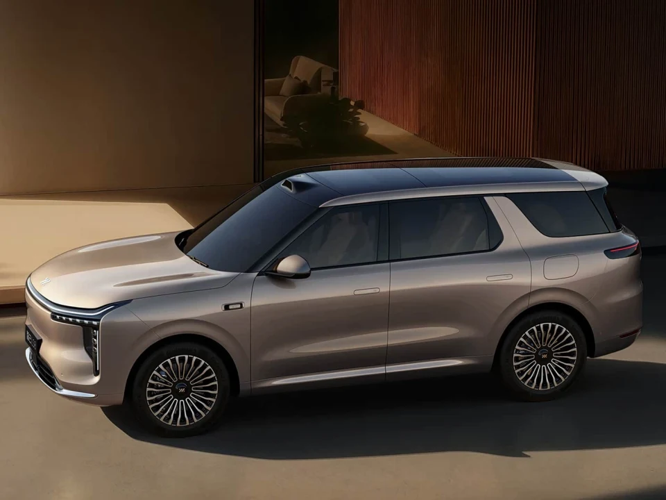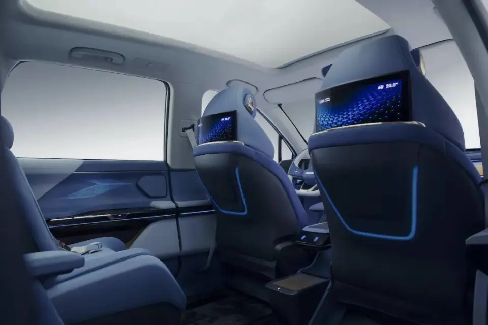 外观延续家族星环灯设计,贯穿灯带加T型大灯,激光雷达整合在车顶不突兀。提供5座和6座布局,第三排实测膝部空间812毫米,头部靠内凹设计补偿,孩子坐着不憋屈。后备箱5座版650L起步,拓展后能当床车用。