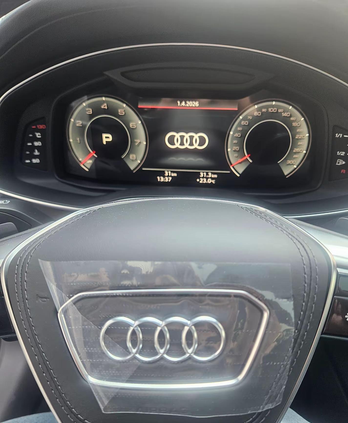 坐进驾驶舱点火那一下,仪表盘自检灯全灭,行车电脑显示里程18公里,低于50公里的标准。我试了四门玻璃升降,天窗开合,空调制冷,音响没杂音,近远光灯、转向灯、刹车灯全过了一遍。随车工具三角架、反光背心、备胎一个不少。机油液位在MMI系统里看,刻度中线以上。这时候我心里那块石头才算落地。