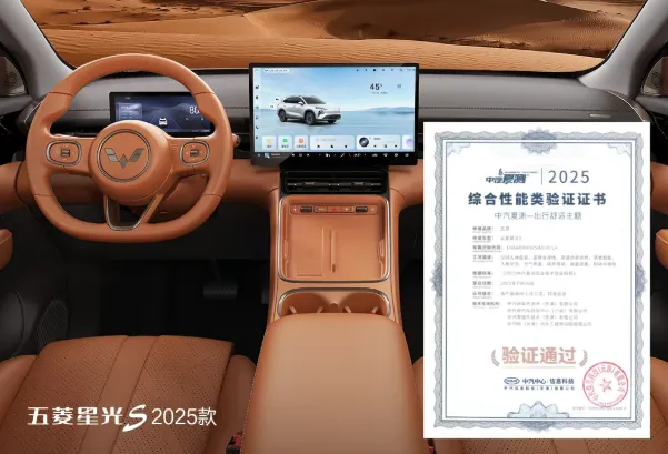 高原认证,灵犀动力系统获权威认可:星光S 2025款搭载的灵犀动力系统同样经历了多角度评测。测试项目包括满载馈电状态下高原超越加速、高原爬陡坡、高原陡坡起步等。灵犀动力系统充分证明了其动力输出的高效稳定、电磁式DHT极低的动力损耗和同级的高效电控水平。该系统荣获中汽中心首批 “整车高原动力之星”认证 ,这一权威认可再次验证了五菱技术突围的战略成果。