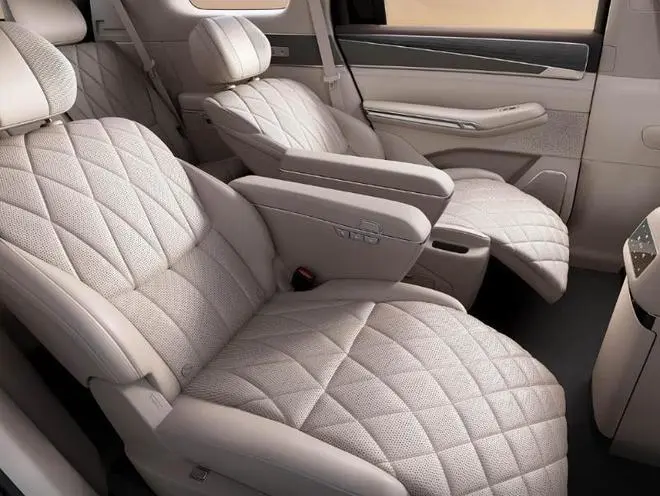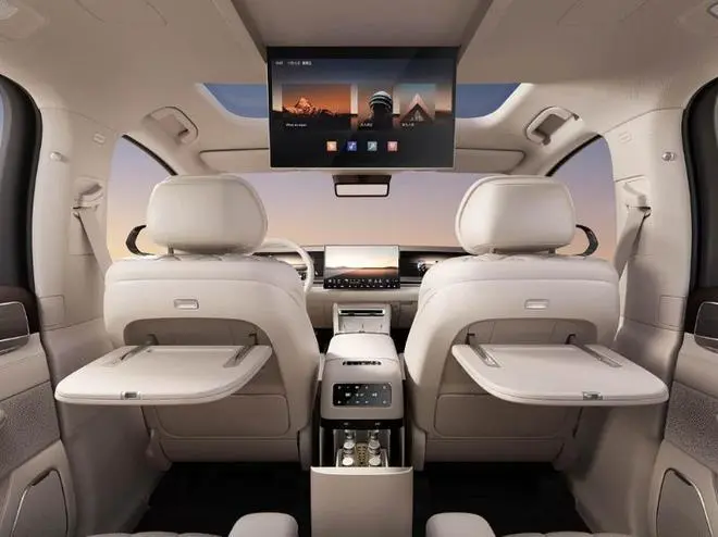配置方面堪称“堆料天花板”,全方位碾压同级,家用体验直接拉满。采用2+2+3的7座布局,完美适配多人口家庭,第二排双零压独立座椅堪称“移动沙发”,一体式腿托+菱形缝线,高级感拉满,还支持一键躺平,长途乘坐也能轻松放松,二排大尺寸折叠屏、小桌板和车载冰箱,不管是办公还是休闲都很便捷。