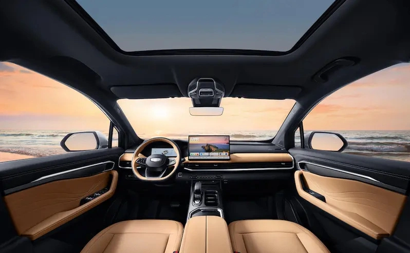 坐进车里,变化也挺明显。整体是吉利中国星SUV的家族风格,看着舒展大气。提供了暖阳棕和月影灰两种内饰配色,都是那种很居家的温馨风格。中控台上14.6英寸的悬浮大屏搭载了Flyme Auto车机系统,对于用惯魅族手机的用户来说,这套系统几乎没学习成本,操作逻辑跟手机很像,老人小孩上手都很快。