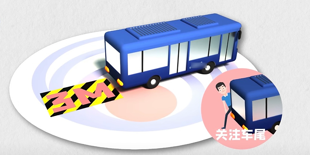 大型车转弯时,前后轮行驶轨迹不同(前轮转弯半径大,后轮小),形成“内轮差”。车身内侧(尤其是后轮附近)会出现一片驾驶员难以观察的区域,若行人或非机动车进入该区域,极易被后轮碾压。
