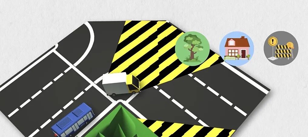 通过交叉路口时,容易因树木、建筑物、施工围挡等遮挡形成盲区;跟车转弯时,视线也会受限。此时驾驶员需依次转弯,直行时车速不超30公里 / 时,转弯时车速不超 20 公里 / 时。