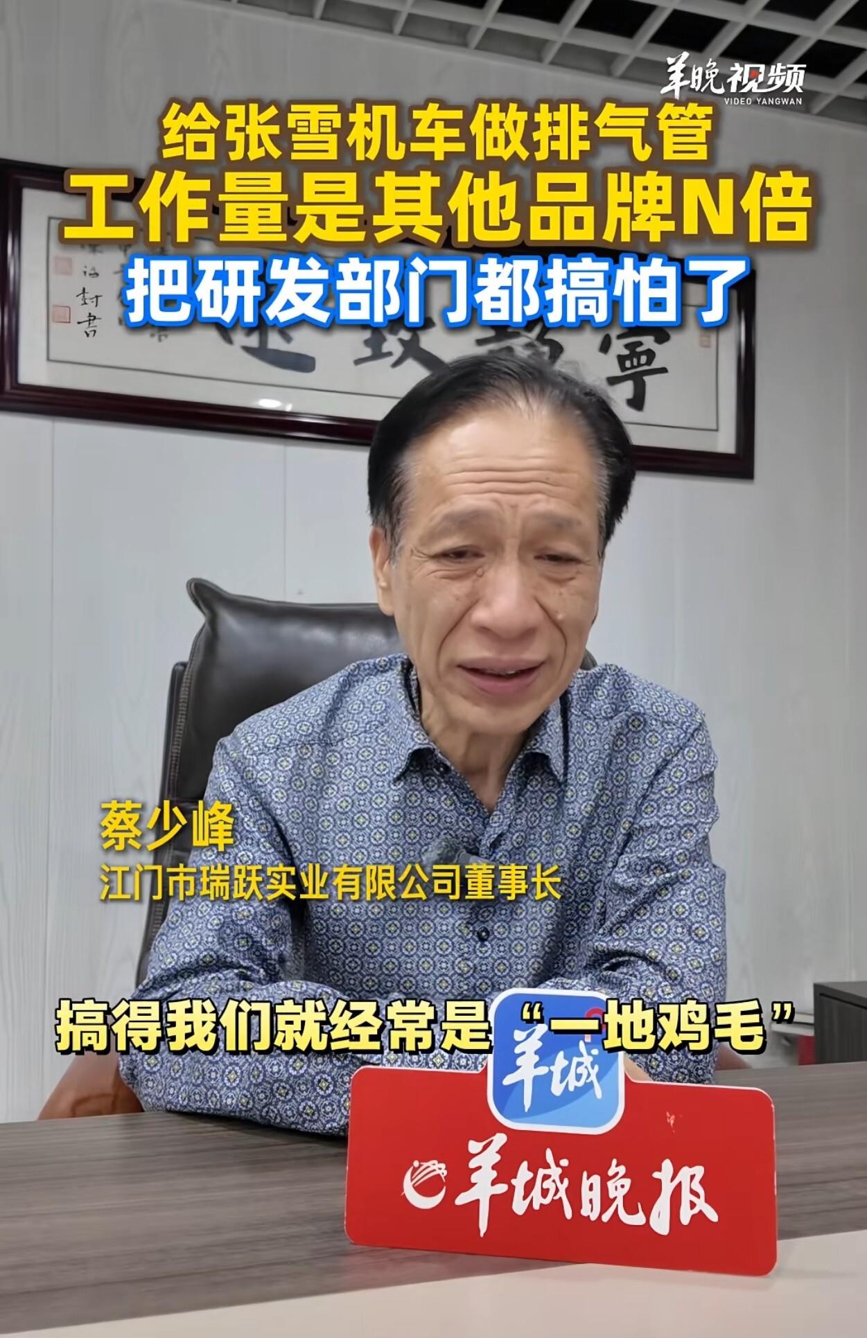 那年的张雪29岁,个子不高,跑到瑞跃实业的展位前,说想做摩托车,要用最好的排气管。蔡少峰打量了他一眼,实话实说:“我的消音器很贵,国内很多主机厂都用不起。”