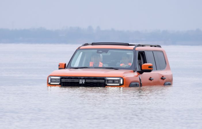 在动力方面,G700搭载智能电混系统,综合输出达到904马力,官方称其性能可对标V8发动机。该车曾在2025年环塔拉力赛中作为未上市量产车参赛,并取得多个赛段冠军,品牌以此作为其可靠性和越野能力的验证。此外,车辆具备970mm的最大涉水深度,并配备IP68级防水系统,在暴雨、积水等复杂路况下具备较强通过能力。发布会上提及的“横渡长江”测试,展示了其密封性与推进系统设计,但此类极端场景的实际使用频率有限,更多体现为技术展示。