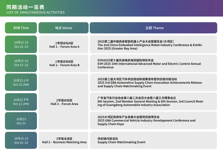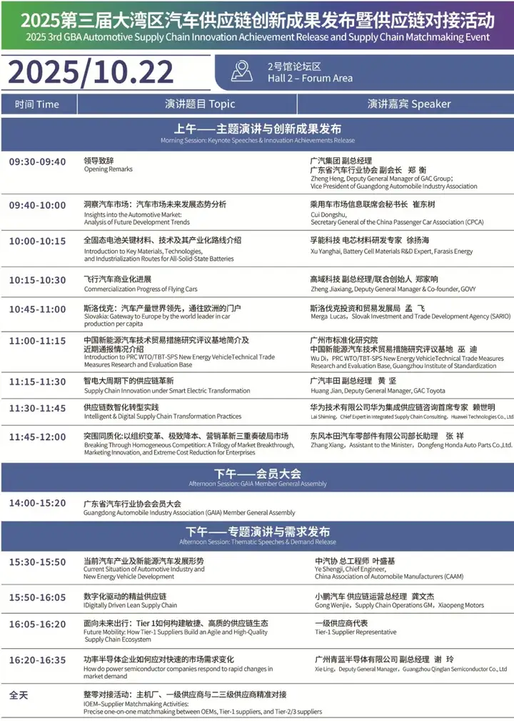NEAS GBA 2025将同期同地举办多场专业论坛会议,活动以 “破界·协同·领航” 为脉络,主题涉及固态电池、飞行汽车、智能驾驶、供应链数字化等热门领域,届时将汇聚超200位全球专家与学者,深度破译行业趋势、剖析创新成果、直击发展痛点,共谋协同生态构建与增长新动能。