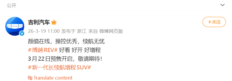3月22日,展车已经开始抵达杭州、邵阳等地的门店,全国媒体试驾同步启动。