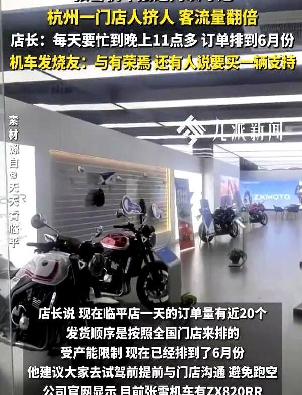 杭州临平店那天的场面,说句不好听的,跟不要钱似的。一天光是进店看车的就有四五十号人,一半点名要冠军同款。柜台上POS机的“滴滴”声此起彼伏,一天签掉将近20个单子。这还只是一家店。济南的店,订单直接排到了6月。武汉东西湖那家店更狠,十来天激增了140台订单,820RR排到了7月。