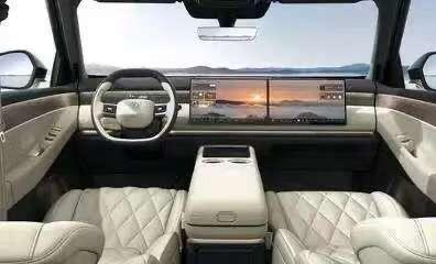 座舱里搞了个九屏联动,仪表盘藏在木纹饰板下面,不用的时候完全看不出来,需要的时候自动亮起来。后排门板上那块小屏幕特别实用,下车的时候会显示侧后方的路况,能有效防止“开门杀”。这个设计真的很贴心,我家孩子就经常不注意后面就开门,有了这个功能能安心不少。