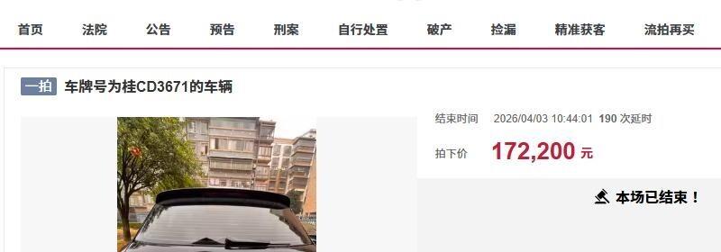 2024年4月3日,广西桂林的一场司法拍卖会上,16个竞拍人围着一辆2017年上牌的大众途锐,整整较劲了235轮。这辆被法院依法扣押的涉案车辆,起拍价只要12万元,最终却以17万多的价格落槌成交,比起拍价整整高出5万块。