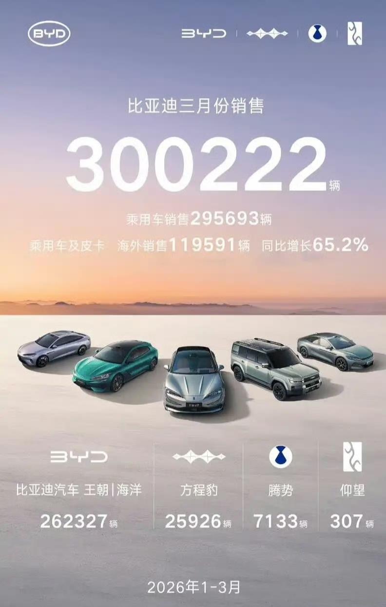 比亚迪3月份的销量数据释放了一个非常危险的信号——30.02万辆。这意味着,进入3月,比亚迪的单月销量比吉利多出了将近6.7万辆。仅仅一个月的时间,就把前两个月落后的差距几乎抹平了。这说明比亚迪的“销冠体质”还在,只要它缓过劲来,反扑的力度极其恐怖。
