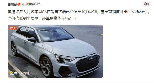 从市场表现看,这场"价格雪崩"确实换来了销量反弹——2025年奥迪A3销量同比上涨22%。但这种以价换量的策略如同饮鸩止渴:老车主发现两年间车辆贬值近50万,新车保值率暴跌直接劝退潜在消费者。