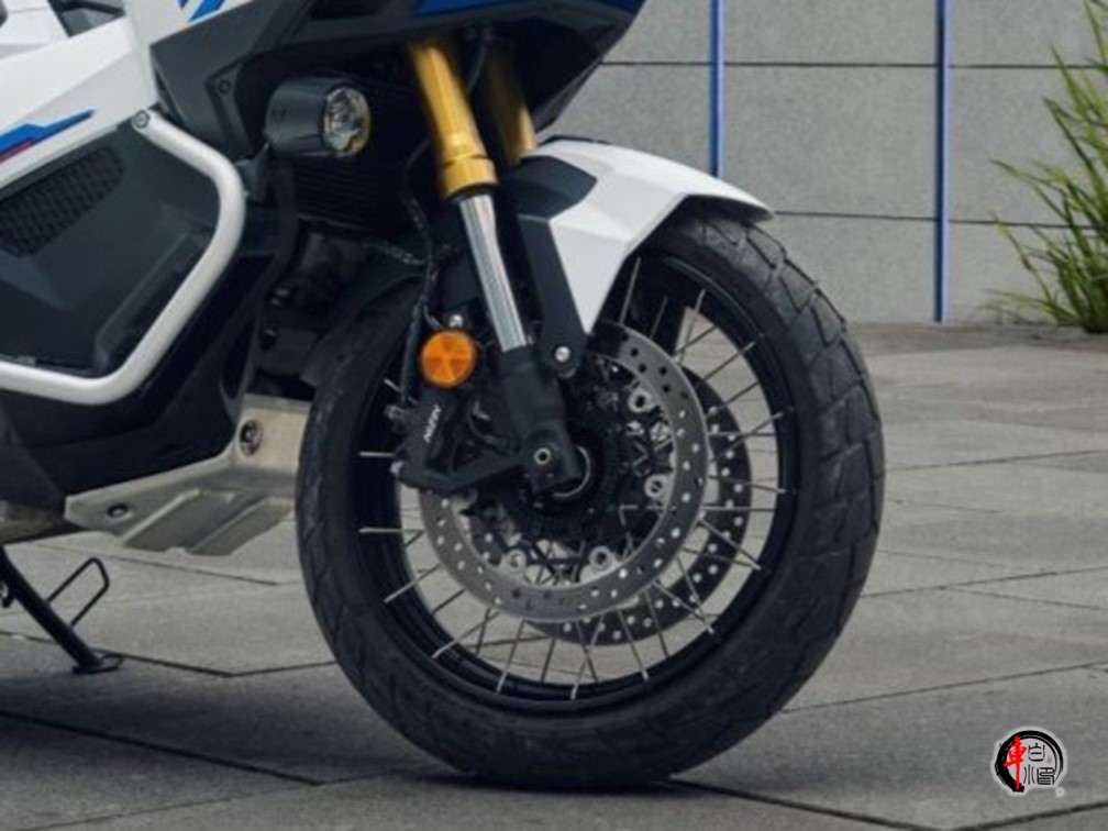 硬件配置体现了其“轻度越野”的定位。减震系统采用前41mm SHOWA倒立式前叉和后Pro-Link多连杆后减震,前后均支持预载调节,提供了面对颠簸路面的基础资本。刹车系统采用前后盘刹,前双盘配NISSIN径向四活塞卡钳,后单盘单活塞卡钳,标配双通道ABS和TCS牵引力控制系统。前后辐条轮毂搭配多功能轮胎,构成了区别于普通踏板的通过性。