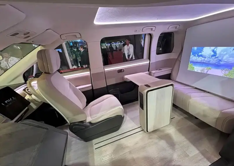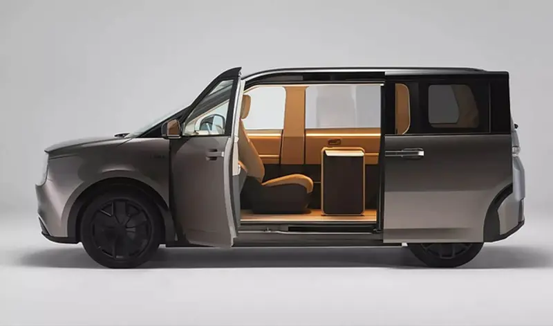 关键信息:车展首发,2027年初登陆日本市场。方正简约,侧滑门,无B柱。内部功能丰富,纯电驱动,参数未公布。